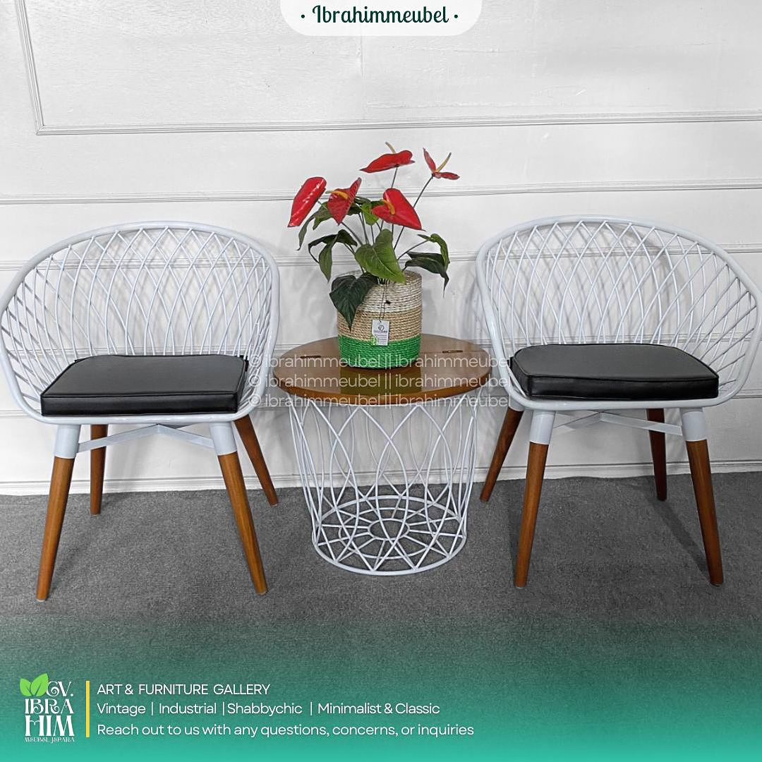 Set Kursi Teras Besi kaki Jati warna Putih dibuat dari bahan berkualitas dan material pilihan, memastikan ketahanan serta keindahan yang berkelas.